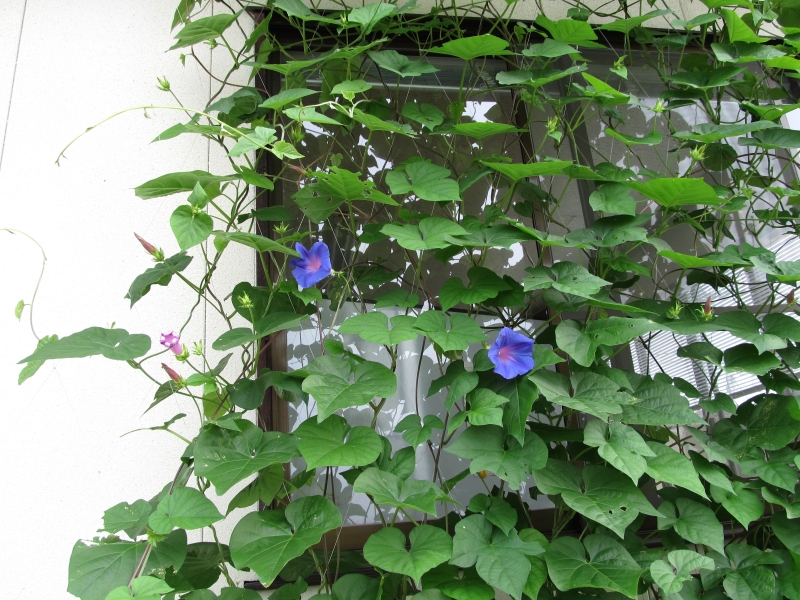 琉球朝顔が仲間入りグリーンカーテンの施工もいたしますので、お気軽に、赤城グリーンにご相談下さい。